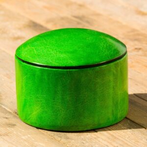 Læderæske håndlavet i træ beklædt med gedeskind.