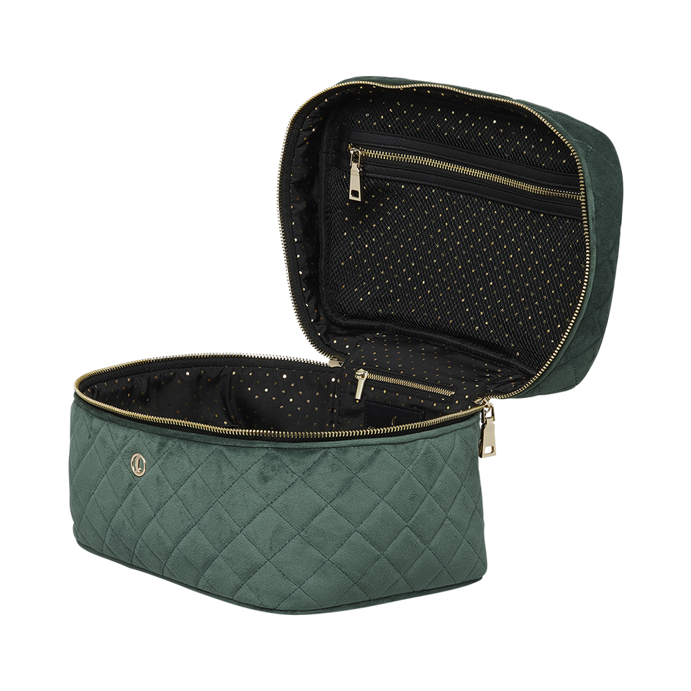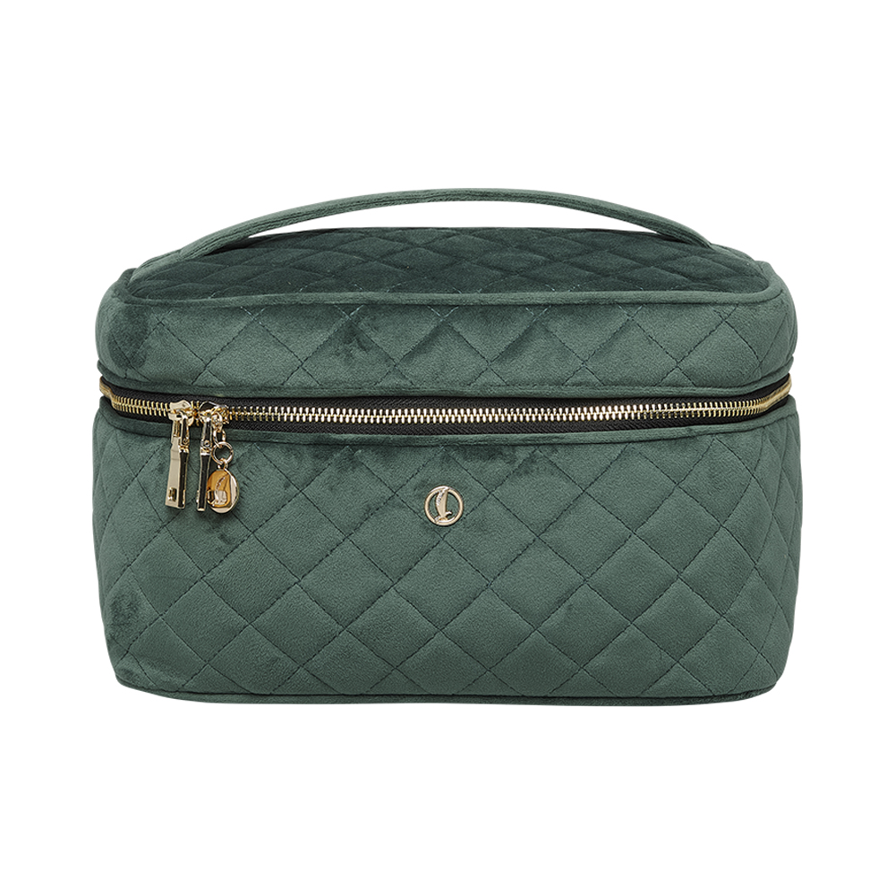 Denne Beauty Bag er fremstillet i en lækker blød velour med det quiltede finish, der giver en særlig raffineret og eksklusiv stil. I denne smukke grønne farve er den ekstra stilfuld og flot.