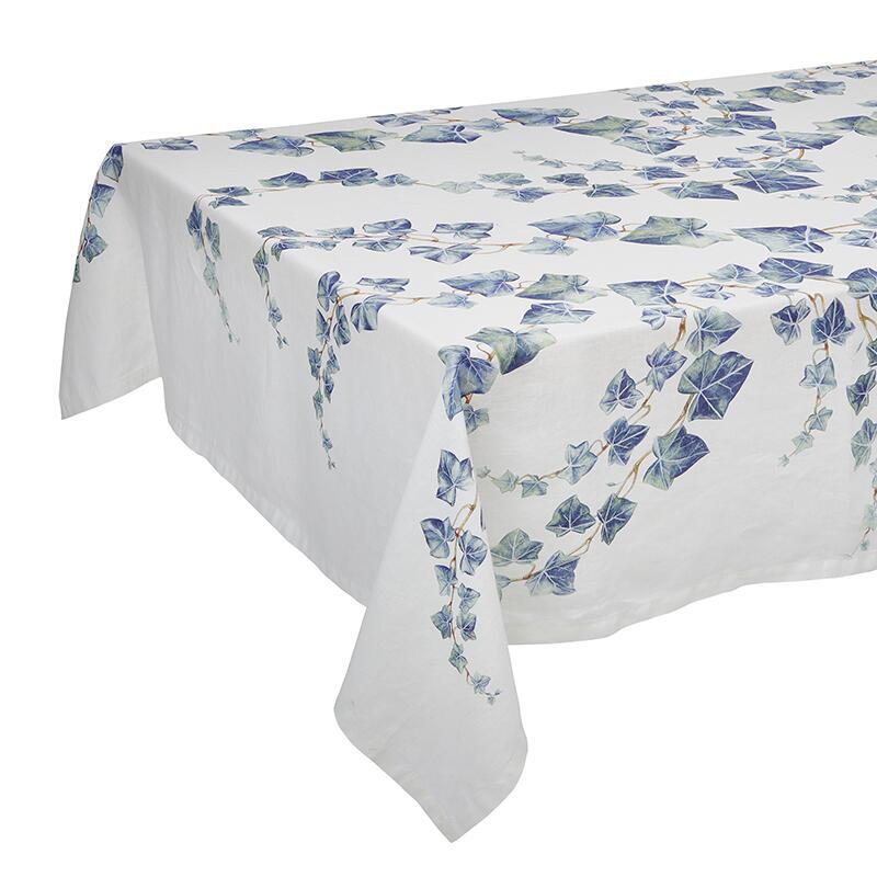 Dugen er fremstillet i stone-washed hør i en lækker og blød kvalitet, og det enkle men smukke design af den klatrende efeuranke snor sig rundt over hele dugen og giver en flor baggrund til din flotte opdækning.