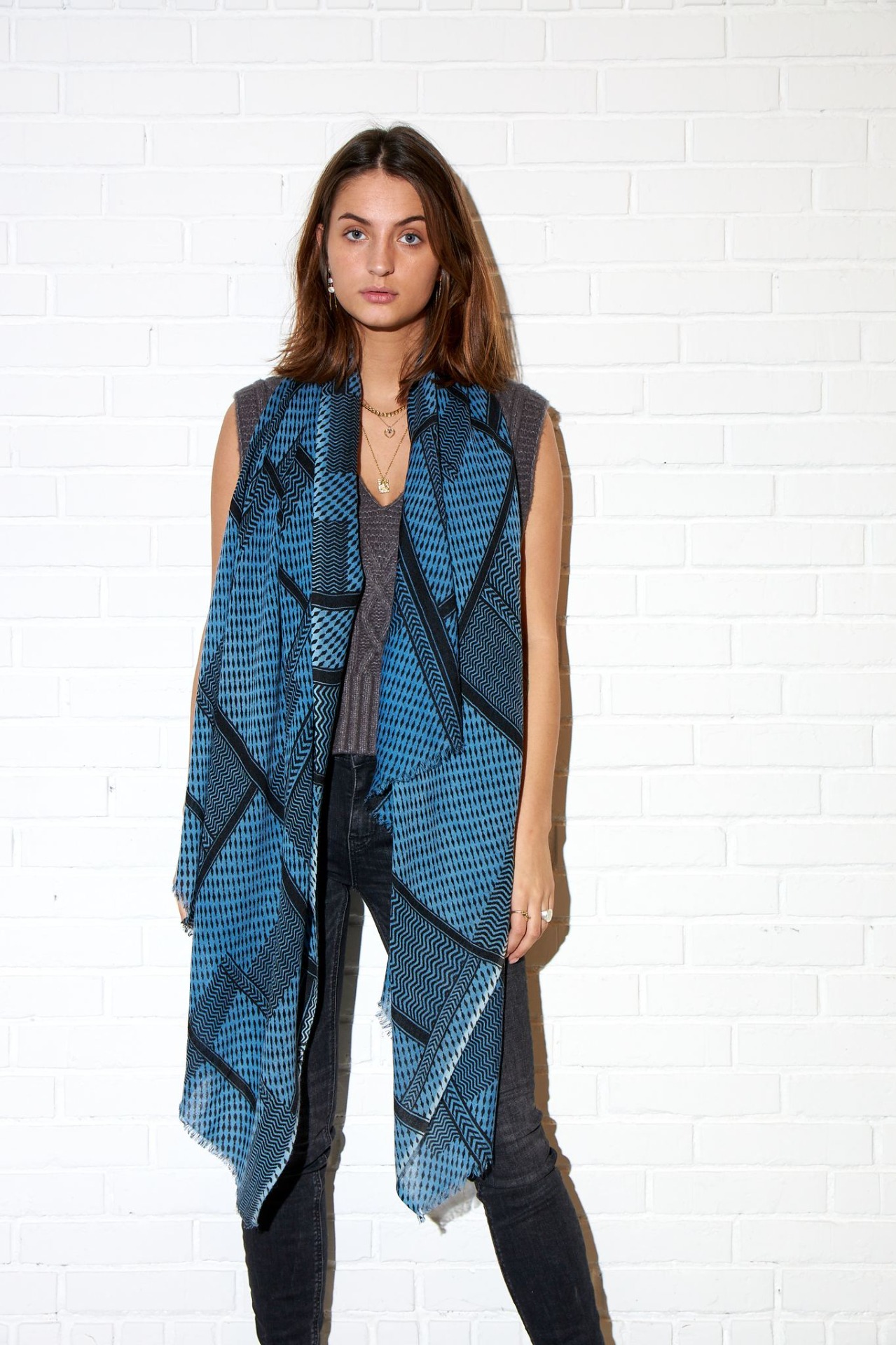 (c) Goodtimes by Louise Antoinette – tørklæder – Partisan Tørklæde, blå / sort, uld.