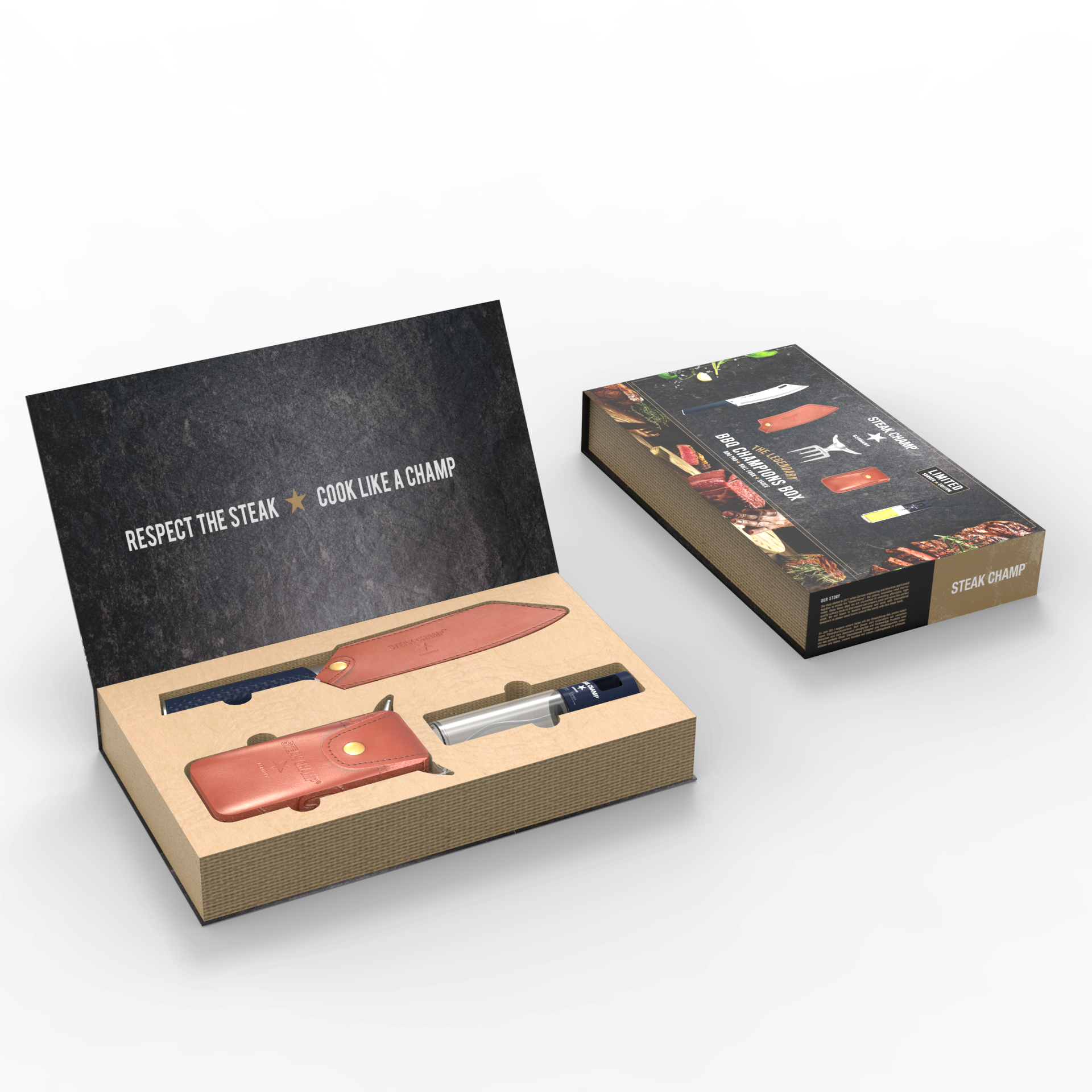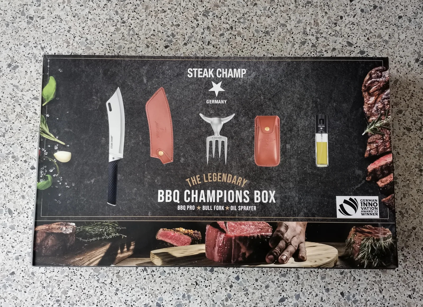 Fra tyske SteakChamp, der har vundet mange priser for deres udstyr, kommer dette flotte gavesæt med 5 dele.