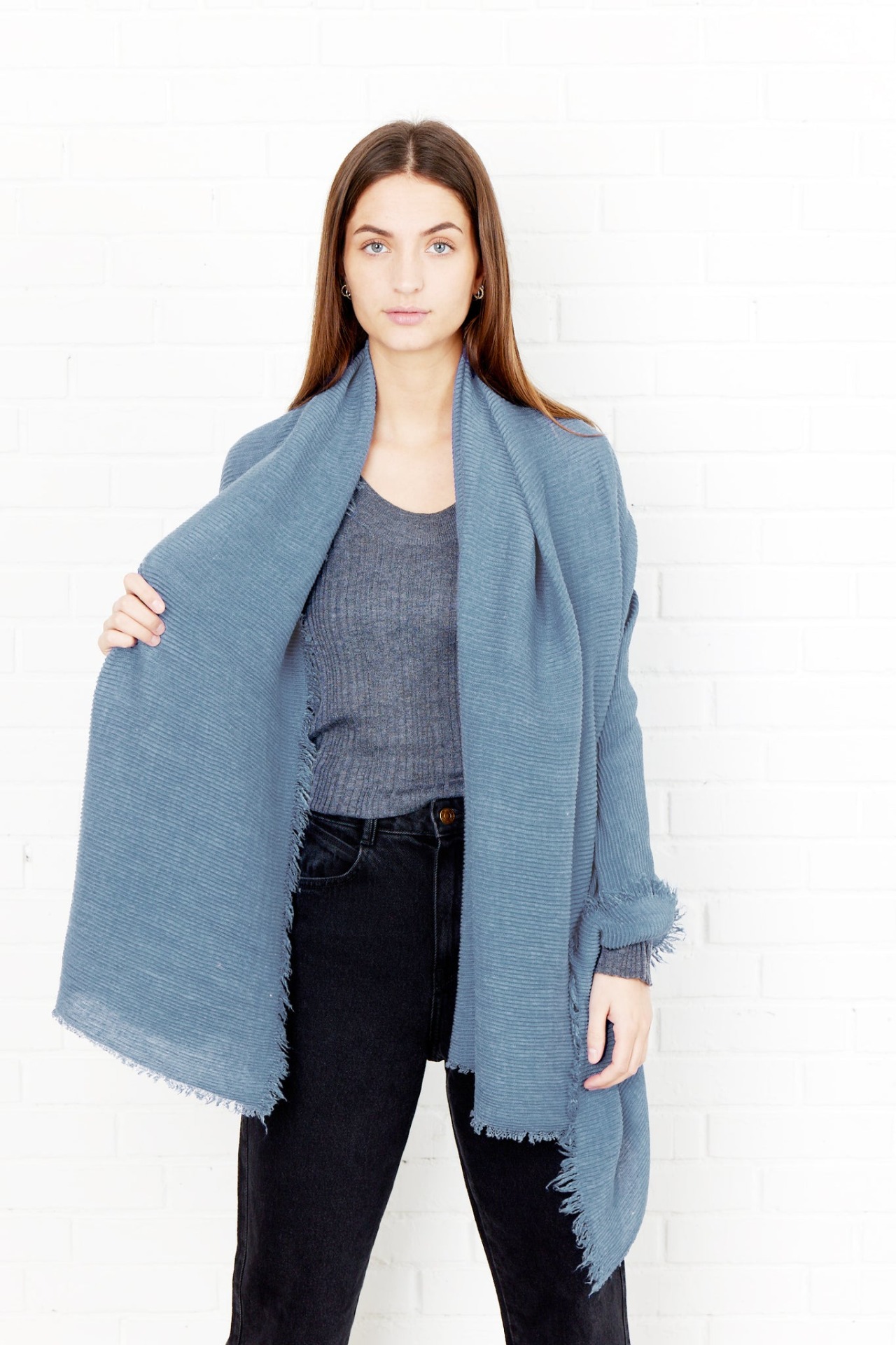 Tørklædet måler 130X165CM, og kan med sin lette kvalitet fungere som et dejligt all-year tørklæde. Varmt om vinteren og let nok til at bruges som et lille sjal forår og sommer.