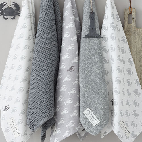 (c) Goodtimes by Louise Antoinette – tekstiler – Viskestykke, Lobster / hummer, grå.